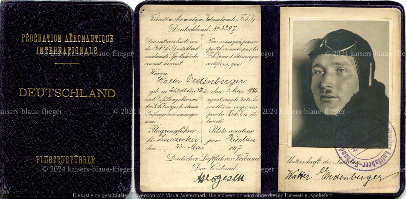 Fliegerausweis der FAI Nr. 2297 vom 22.05.1917